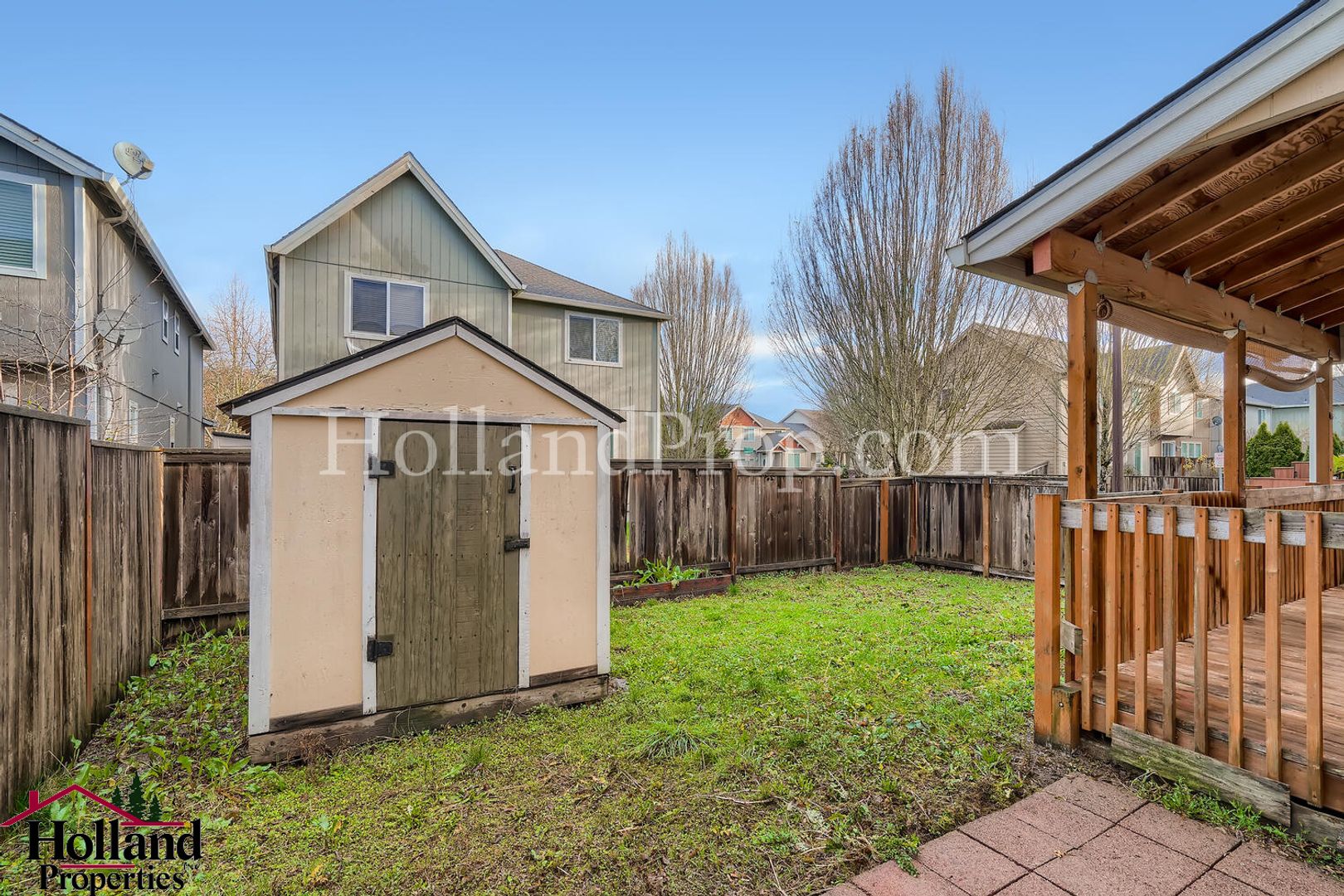 A large backyard shed provides extra storage for your gear and hobbies.